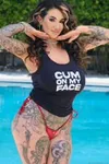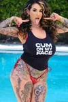 Tattooed slut Arabelle Raphael blowbanged and facialized.