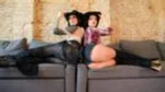 Horny babes Kristy Black & Morea Black shared by two dicks.
