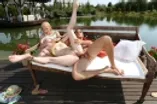 Lucky Rocco bangs two teen sluts Angie & Misha by the lake.