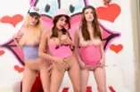 Three beautiful whores share one big cock in sloppy blowjob